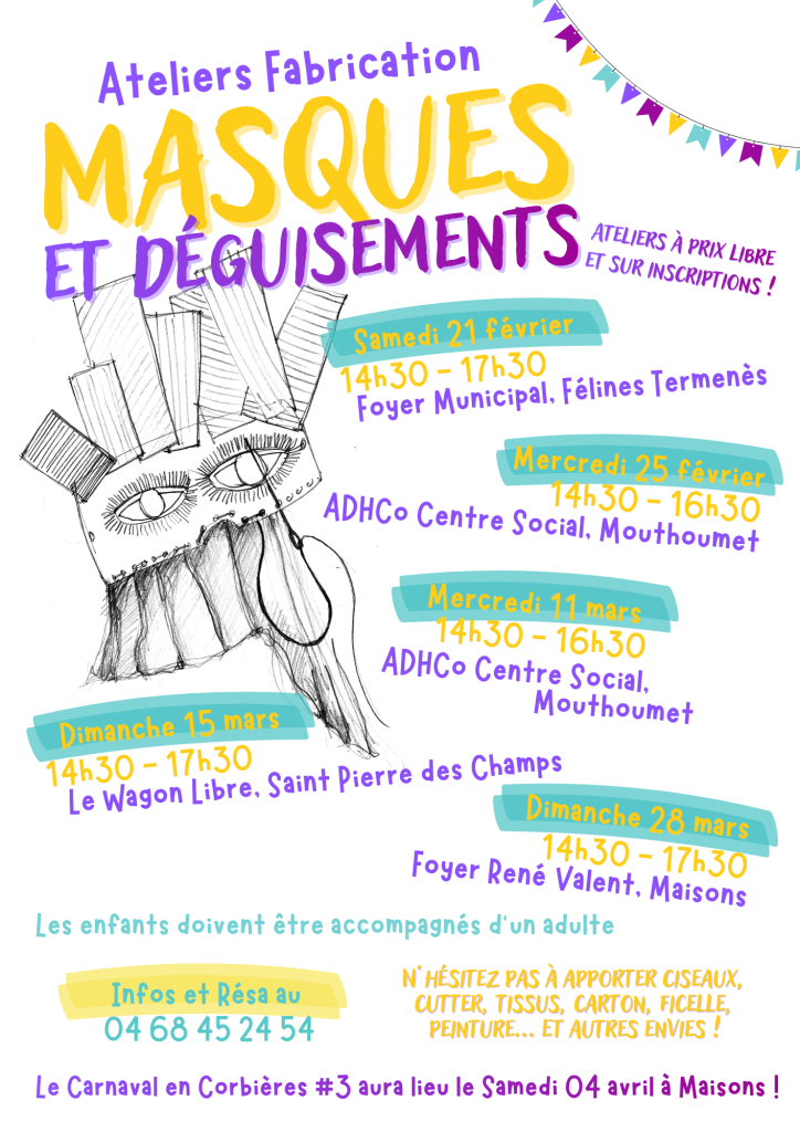 Associations et habitants ont décidé d’organiser un «gros carnaval» un an sur deux, compte tenu de l’énergie que cela implique. Entre les «grosses «éditions», le carnaval en Corbières prendra une forme plus modeste et spontanée. Ainsi la 2ème édition a eu lieu dans le village de Massac, avec un très bel accueil de la mairie et du comité des fêtes.